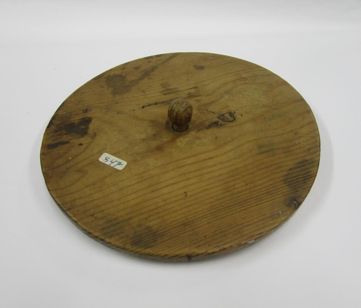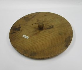Skrautmáluð tréskál. Aðallitir eru rauður og svartur. Skálinni fylgir lok sem greinilega er ekki ætlað á hana. Þvermál loksins er 20,5 cm. Úr búi Gróu Davíðsdóttur saumakonu.