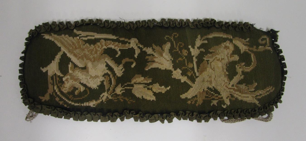 Púði, sessa, baksessa úr barnaruggustól sem var í eigu eins af börnum Árna og Önnu Magdalenu Thorlacius.