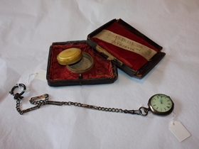 Hluti þessa, kvenúr, festi og úrkassi átti Kristjána Guðrún Hallsteinsdóttir sem lengi var húsfreyja á Sólmundarhöfða, (f. 1871). Dóttir hennar Elka Guðrún Aradóttir, húsfreyja á Másstöðum, eingaðist úrið og festina eftir móður sína og gaf safninu.
