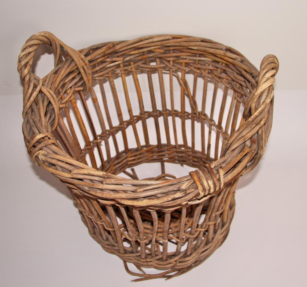 Fiskikarfa úr bambus. Brugðin saman, gisin og farin að bila. Breidd 54 cm, hæð á barma 36 cm, hæð á eyru 47 cm.
