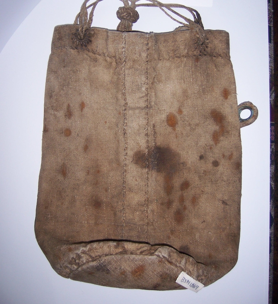 Strigapoki með 34 cm langri fléttaðri snærisól. Í enda ólarinnar er kósi þannig að hægt er að hengja pokann upp. Í pokanum eru áhöld notuð til seglasaums (BSH 1870 - BSH 1884).