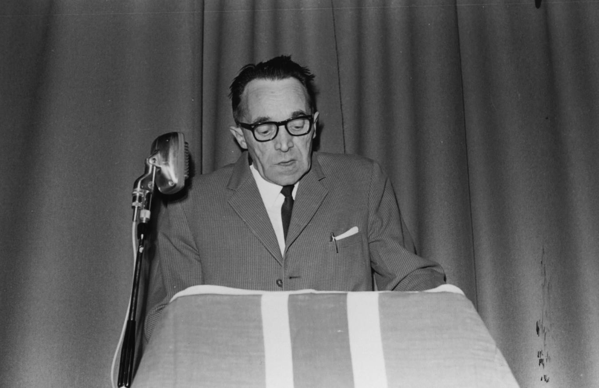 Vígsla félagsheimilisins Dalabúðar laugardaginn 24. júní 1967. Benedikt Jóhannesson formaður byggingarnefndar í púlti.