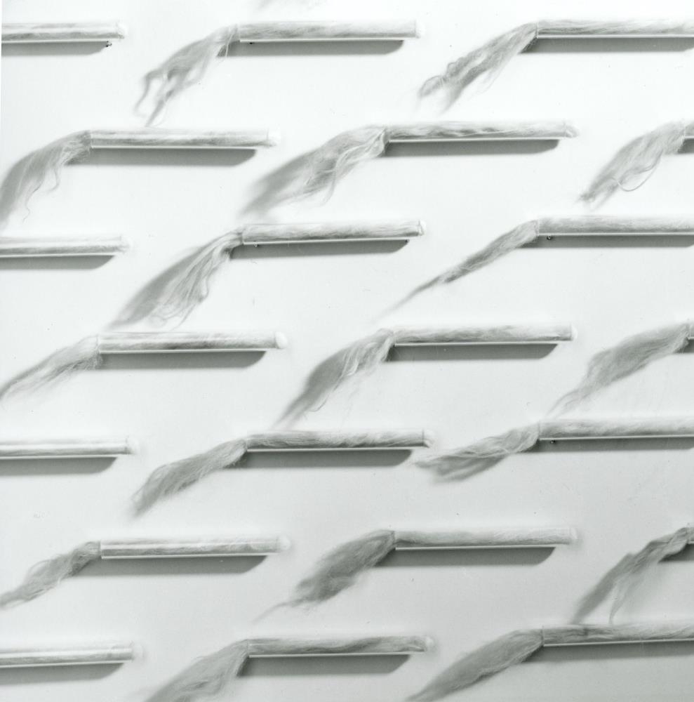 Verkið var gert fyrir sýningu Kristínar í Flugstöð Leifs Eiríkssonar 1996, sem var samvinnuverkefni stjórnar flugstöðvarinnar og FÍM (Félags íslenskra myndlistarmanna). Verkið var sýnt í aðalgangi byggingarinnar og sýningarrýmið veggirnir þar sem gengið var út í flugvélarnar. Kristín notaði vegginn báðum megin og var verkið í tveimur jafn stórum hlutum sem voru í formi eins og oddaflug fugla. Á hægri vegg var hreyfing verksins út úr byggingunni, á þeim vinstri inn. Verkið er gert úr mörgum litlum plexiglerhólkum með hvítu ullartogi. Ári seinna var verkið sýnt í Gerðarsafni og var þá upphenginunni breytti og þessir tveir hlutar gerðir að einum þar sem verkið hékk á stórum vegg og hafði góða fjarlægð.