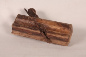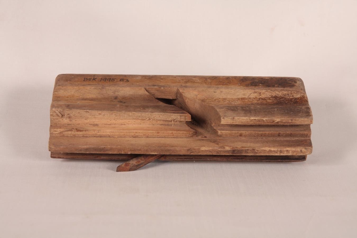 Strikhefill/falshefill úr eik, 21 cm að lengd. Tvöfalt kerfi. Hægt að hefla bæði nót (rauf) og fjöður til að fella saman fjalir. Tönninn (járnið) fyrir nótina er á sínum stað en hitt fyrir fjöðrina er tapað.