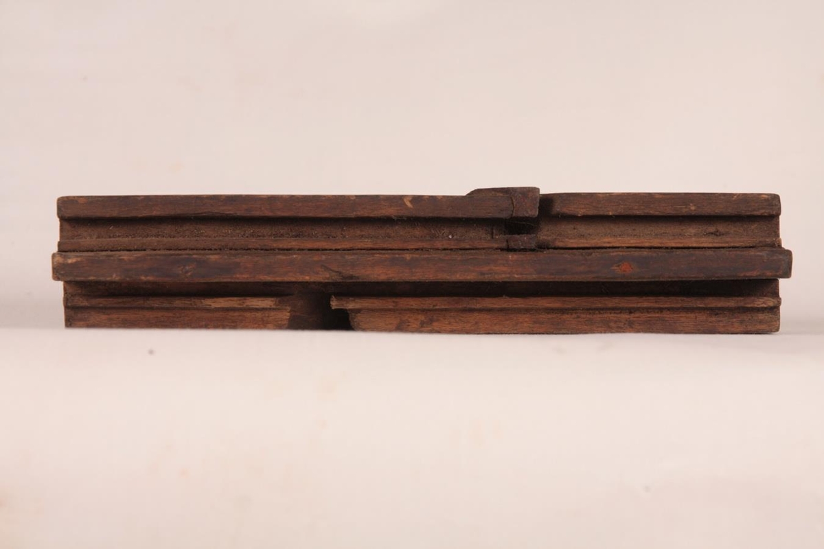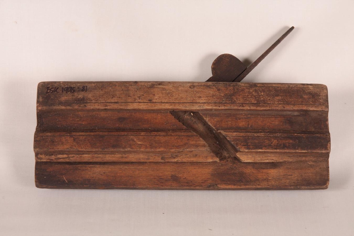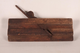Strikhefillúr eik, 23 x 8 x 3,8 cm. Tvöfaldur, ætlaður til að gera bæði nót og fjöður á fjalir. Aðra tönnina vantar.