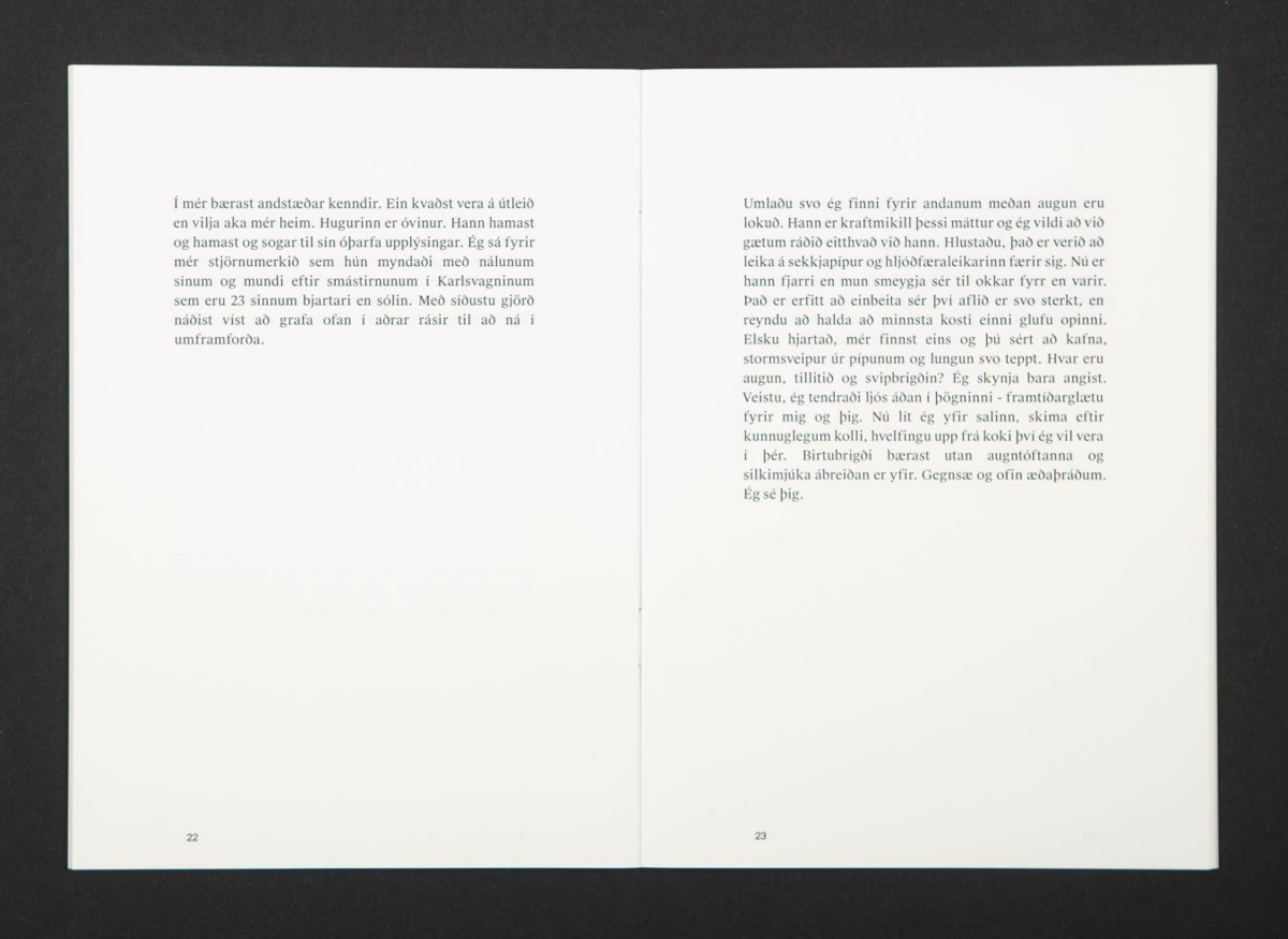Bókin er 32 tölusettar blaðsíður, heftuð með mjúkum ljósbrúnum spjöldum. Texti á íslensku og litljósmyndir. Letur: Suisse Works og Suisse Int'l. Pappír: Munken Pure Rough 100 gr. Colorit 120 gr. Prentun Ásprent, Akureyri.