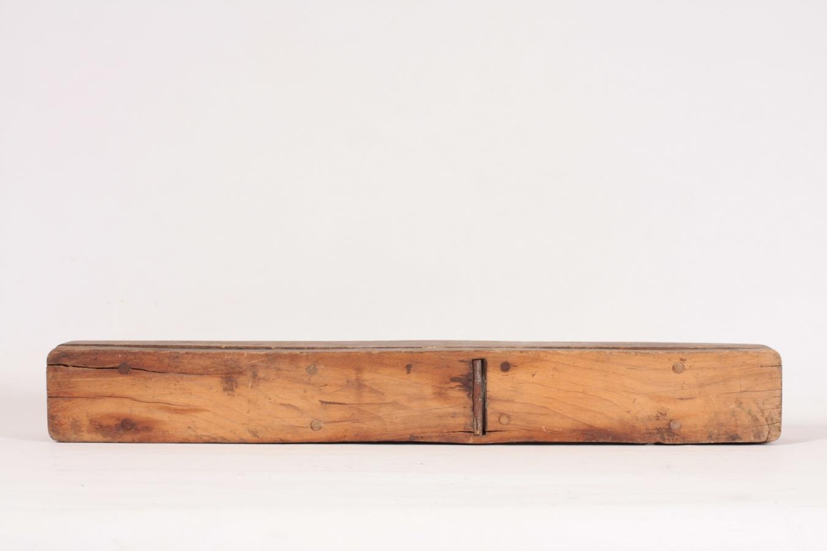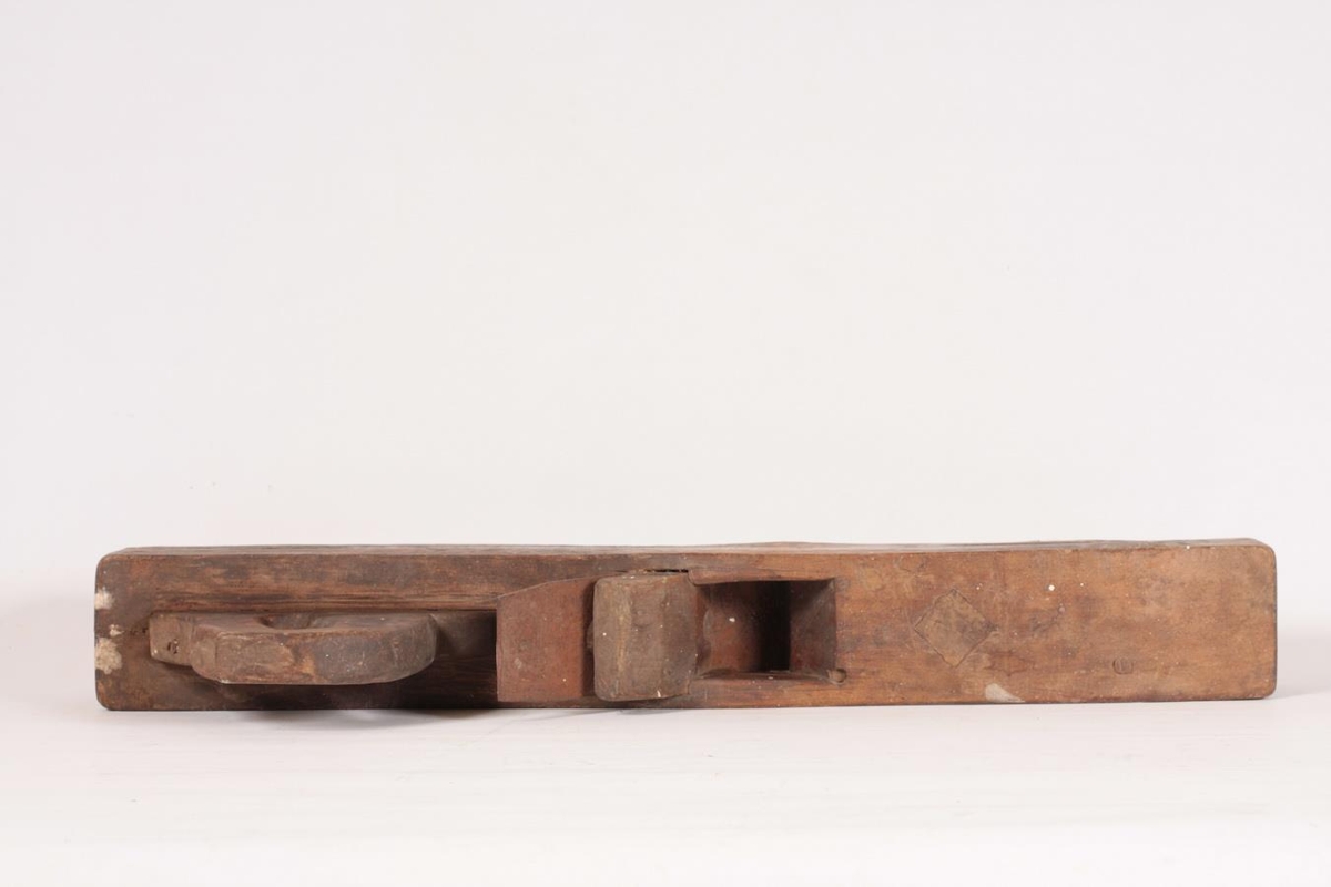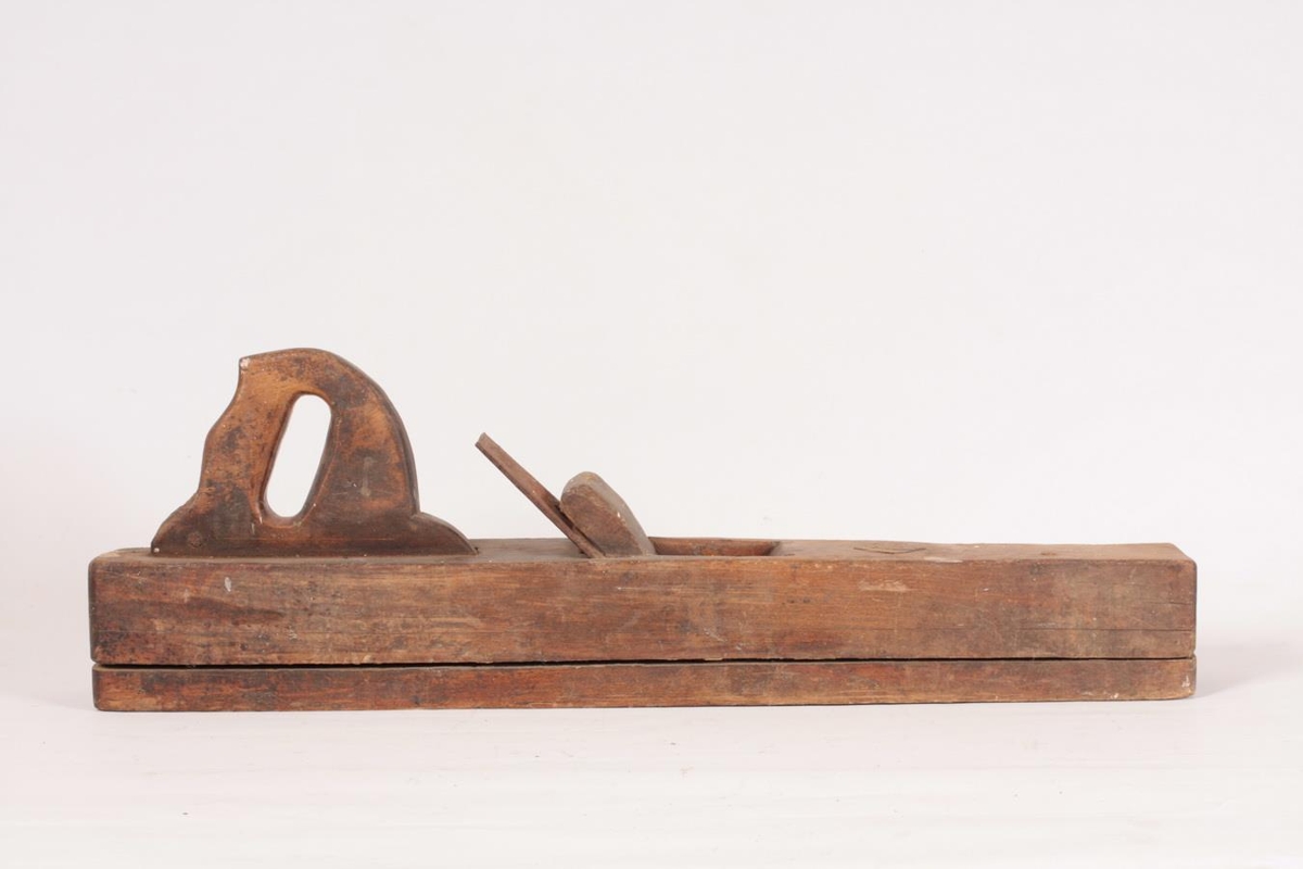 Hefill úr furu (borðhefill). Heimasmíðaður. Tvöfaldur og trénegldur saman. Handfangið er eins og sög og stendur 11 cm upp úr borði. Eigendur voru Bjarni Jónsson (1863-1934) og seinna Óskar B. Stefánsson (f. 1901) beykir á Sauðárkróki frá 1937. Gefandi er Páll Óskarsson, Háuhlíð 14. Sauðárkróki.