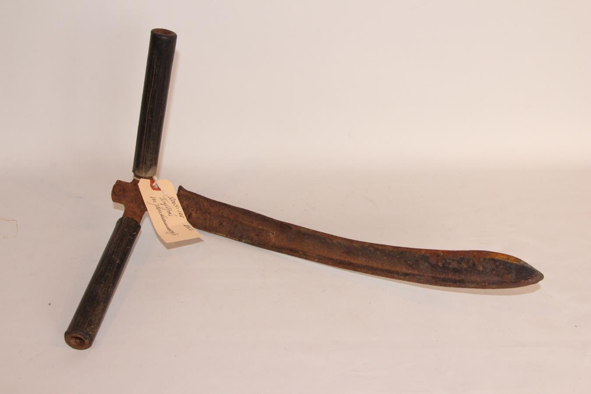 Torfljár með skammorfi úr járnröri sem klætt er svörtum gúmmíhólkum. Breidd skammorfs: 34,5 cm, þvermál 2,7 cm og sveigist í nær 90° horn (85°), á kverkina er soðið einskonar klemma sem skrúfuð er framan á með skrúfbolta og ró. Inn í þessa klemmu gengur járntangi sem sveigður er í 90° horn við klemmuna og aðeins krappara horn til blaðsins.