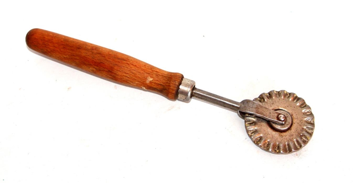 Kleinujárn, úr járni. Haldið er úr furu. Lengd alls er 18 cm og þvermál hjólsins er 3,8 cm.