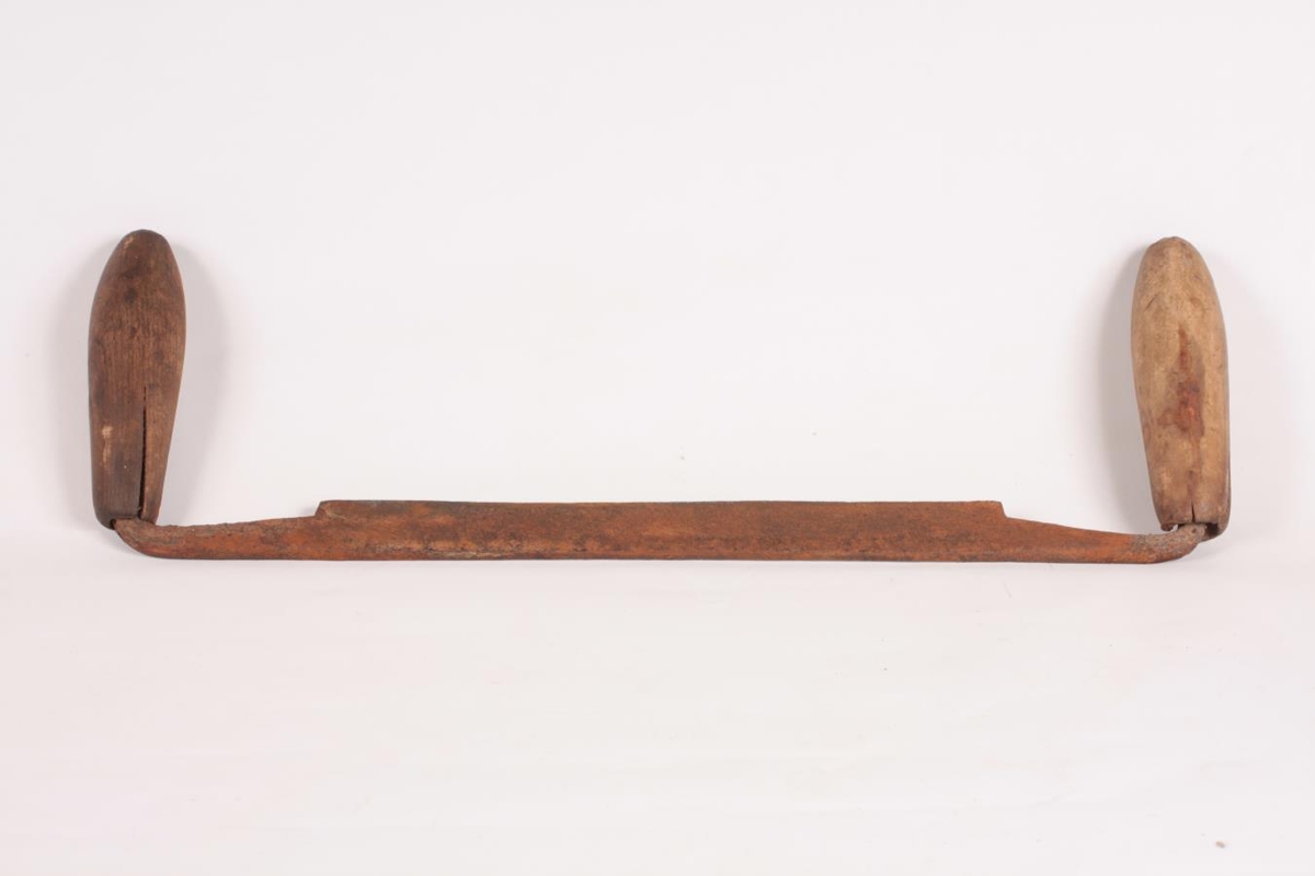 Hófjárn með tréhandföngum. Gæti þó allt eins verið flatt tunnujárn. Úr eigu Óskars B. Stefánssonar (f. 1901), beykis á Sauðárkróki frá 1937. Gefandi er Páll Óskarsson, Háuhlíð 14. Sauðárkróki.