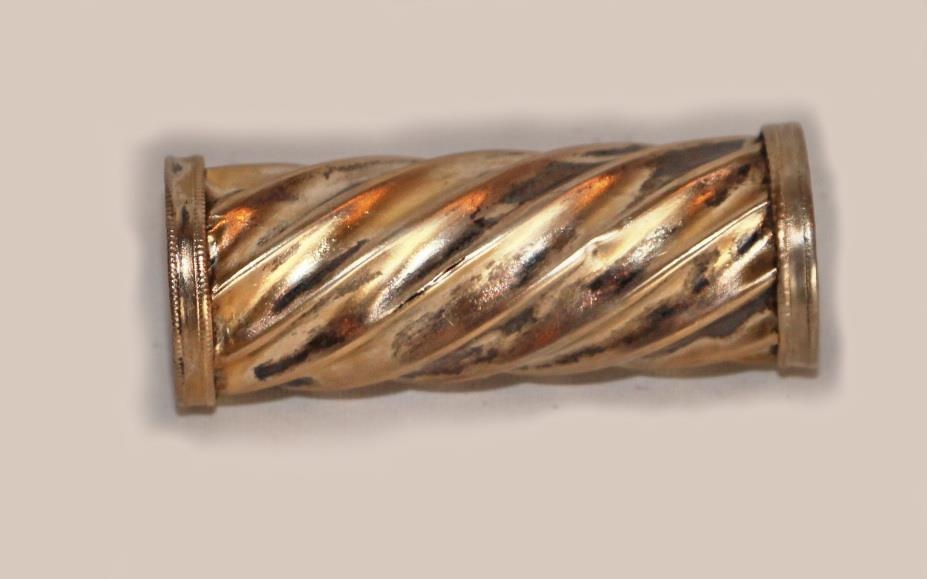 Skúfhólkur úr nýsilfri, lengd 5 cm, þvm. 1,9 cm. Sívafinn, jafnbreiður. Óstimplaður, óslitinn og nýlegur að sjá. Fín smíði.