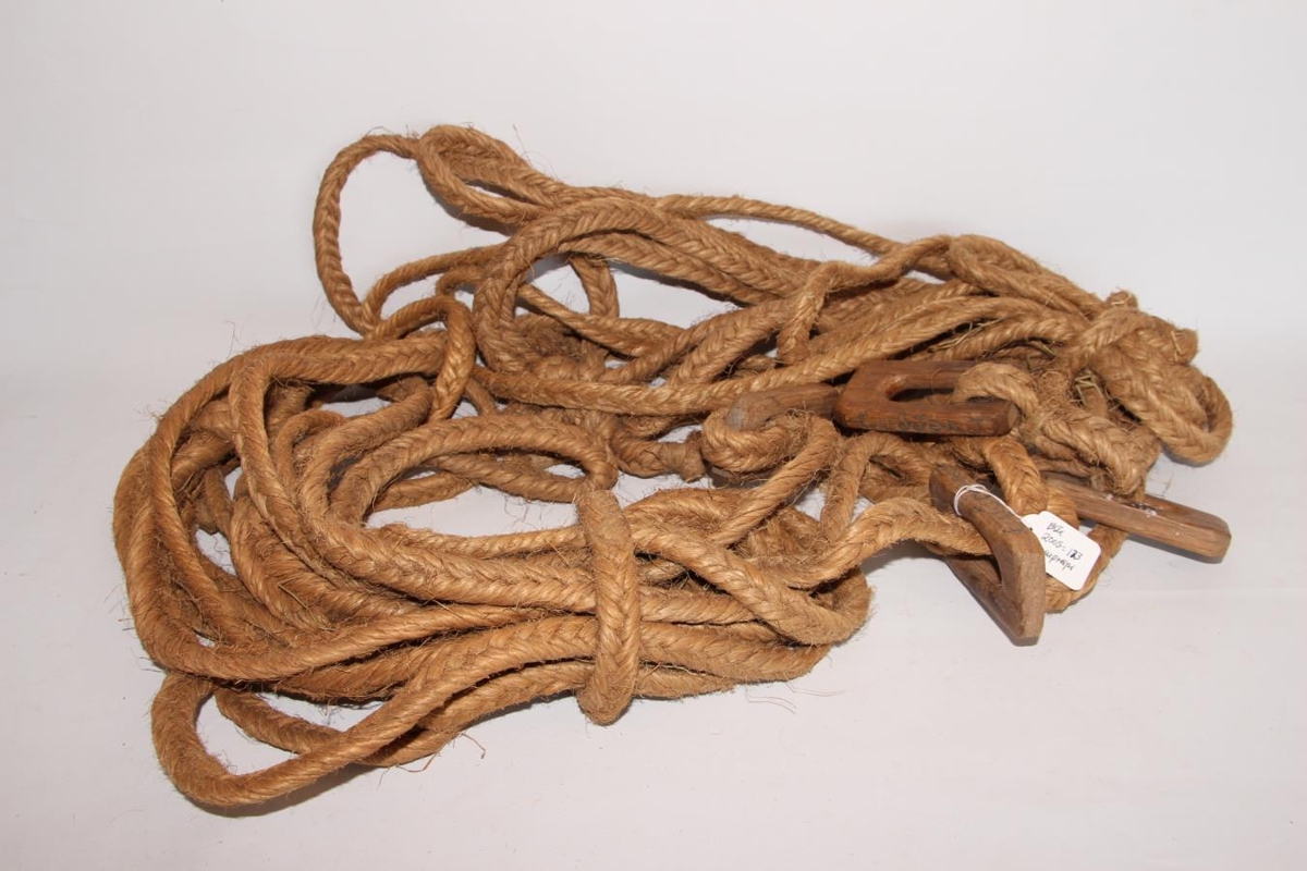 Fléttað hampreipi um 6 metra langt. Fjórar hagldir eru á, tvær á hvorri samstæðu. Þær eru úr furu 10 x 5,1 x 1,5 cm. Allar með einu gati aflöngu. Tvær eru brennimerktar með stöfunum GJ JÓS og í brúnir þriðju er skorið: GUÐJÓNJ. Ein er ómerkt.