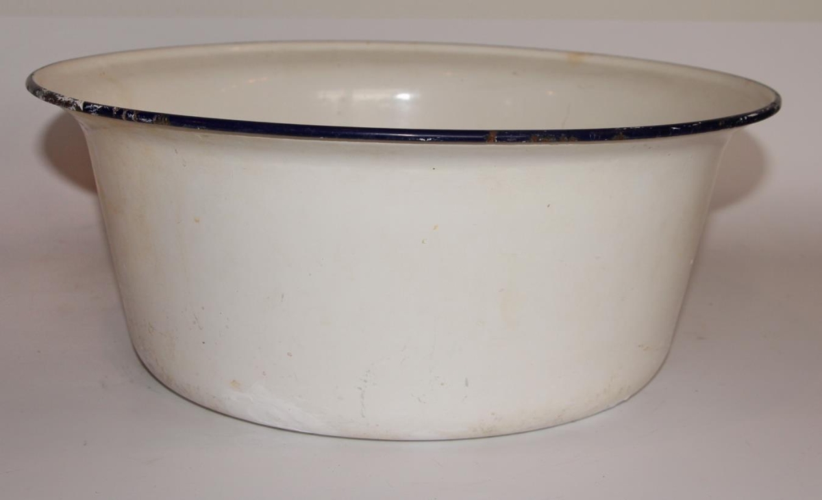 Vaskafat. Hvítt með blárri rönd, emaljérað. Made in Chechozlovakia 38 ltr. Málað með hvítu yfir skellur í botninum.