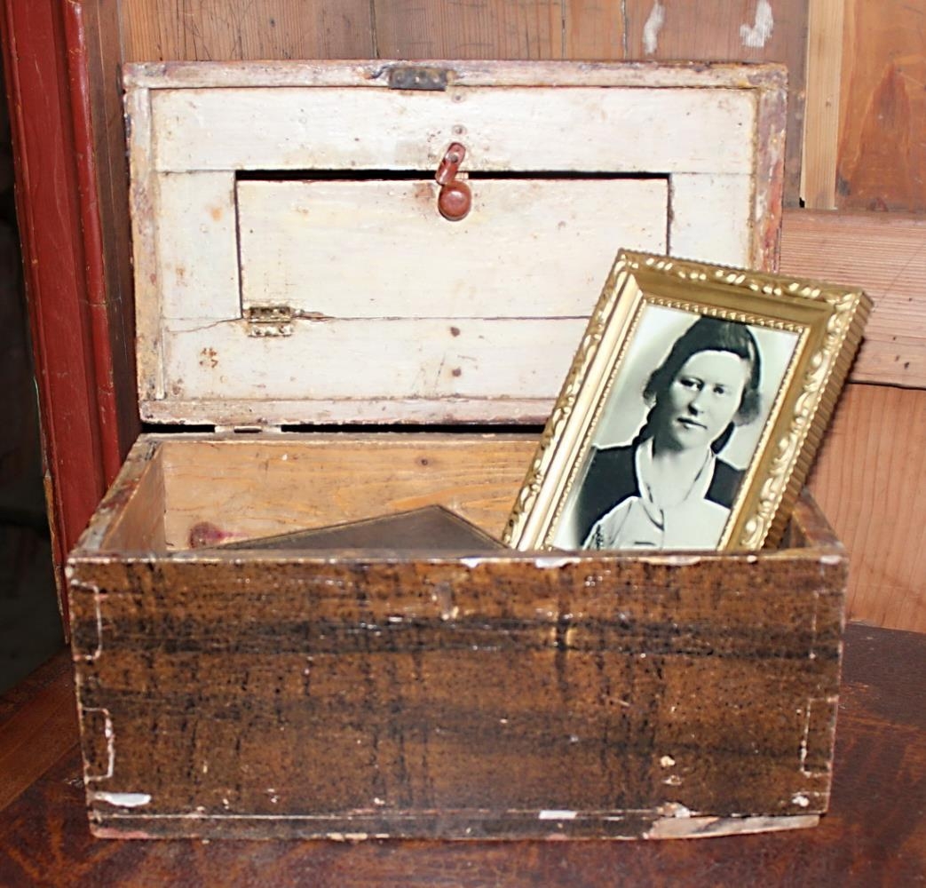 Í kistlinum eru tvær bækur, nýja testamentið og minningarbók frá Hólaskóla, ásamt mynd af Hólmfríði. Kistill þessi bjargaðist úr brunanum á Hólum er skólahúsið brann á 3. áratugnum.