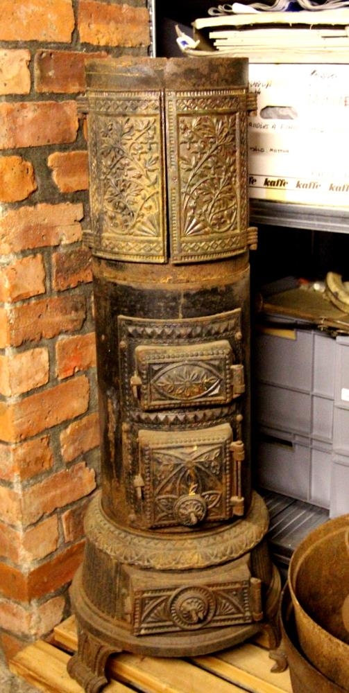 Kolaofn úr járni, fremur stór. Ofninn var í leikfimisal Bændaskólans á Hólum í Hjaltadal til 1960. Var í Efra-Ási vegna farskóla, þangað til Barnaskólin á Hólum var settur á stofn. Ofninn er farinn að láta á sjá og þarfnast hreinsunar. Breidd: 50 cm. Fjögur hólf eru á ofninum að framan, innanmál eru á því neðsta: 8,5 x 22,5 cm, næstneðsta: 16,5 x 18,5 cm, næst efsta: 29 x 26 cm og það efsta, sem er bogið með vængshurðum, 29 x 26 cm. Þvermál á gatinu kringlótta efst sem fer út í vegg er 10,5 cm. Hatturinn er 27,5 cm í þvermál og þrír fætur eru undir ofninum.