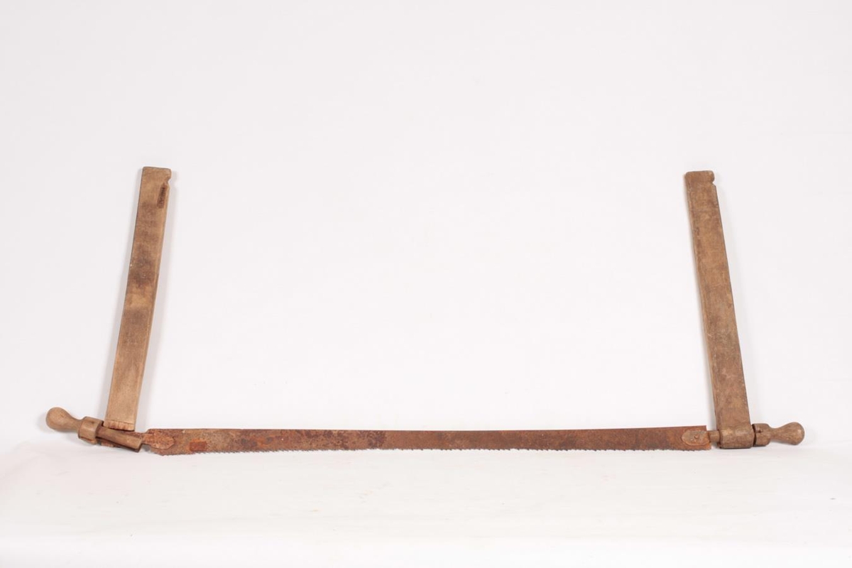 Grindarsög úr tré með járnblaði. Hún er svolítið farin að bila. Brotið er blaðhald öðru megin. Blaðið er 82 cm langt. Sögin er sjálf 102 cm og 40 cm há. Bandið er farið. Hnúðar á blaðhaldara eru renndir.