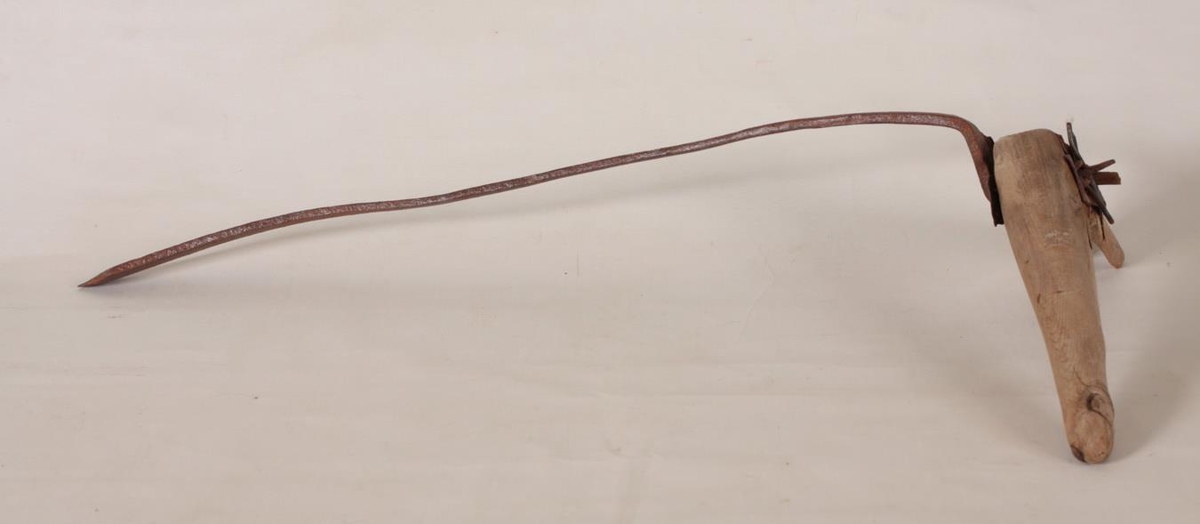 Torfljár, úr heilu járni (einjárnungur), skammorfið er úr heilu tré, brotið af öðru haldinu. Breidd: 28 cm. Haldlengd á heila haldinu er 21 cm. Ljáblaðið er 50 cm, fremur þykkt, bogið og brotið fremst. Á skammorfinu eru járnpynnur báðu megin þar sem járnið gengur í gegn og er fest með splitti. Um þennan torfljá segir gefandi, Andrés H. Valberg: „frá Helga Arasyni bónda á Fagurhólsmýri. Sá sem risti torf, kraup niður á hægra hné, brá ljánum á jörðina og risti, færði sig og risti þar til torfan var orðin hæfilega löng. Þá var rist eins á móti og lá þá torfan laus. Næsta torfa var rist þar við hliðina. Fyrsta torfan hét Flagmeri. Næstu torfur hétu grastorfur. Þar sem torfrista var góð voru skornar aðrar torfur í sama flaginu, farið niður. Voru þær kallaðar undanfláttur, þær gátu verið breiðari. Þannig var reiðingur tekinn. Ekki voru notaðar grastorfur í reiðing. Torfurnar voru hringaðar upp jafnóðum og látið síga úr þeim og léttast. Þá voru þær fluttar á hestum, þvert yfir bakið og héngu endar við jörðu. Svona ljáir voru einnig notaðir til að snyrta klömbruhlaðinn vegg.”