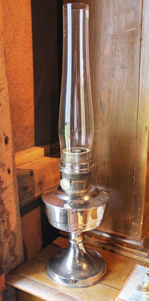 Borðlampi úr pjátursmíðuðu járni. Super Aladin lampi. British Maqde keyptur sennilega um 1940.