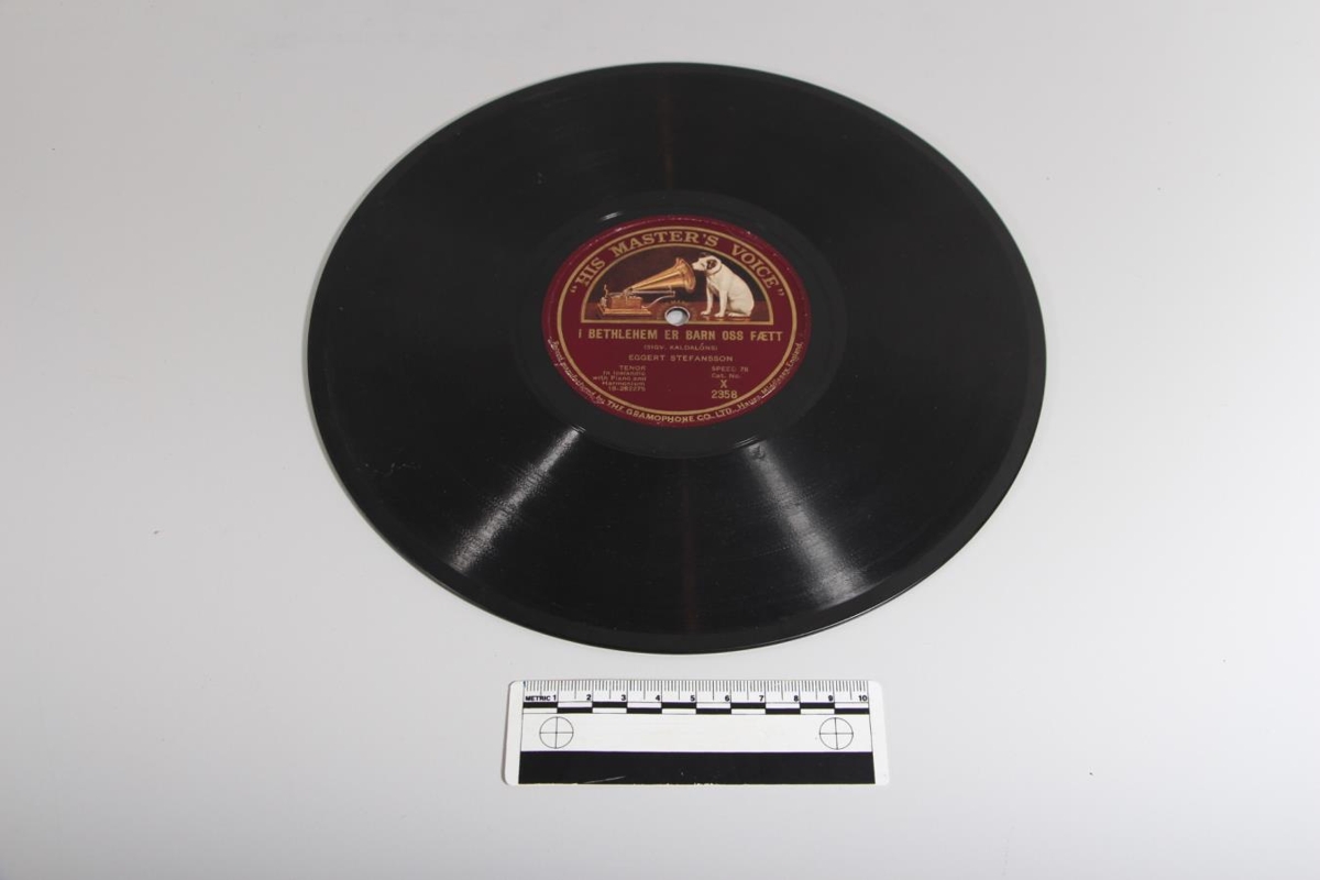 Hljómplata. Eggert Stefánsson. 78 snúninga. 25 cm í þvermál. „Heims um ból“ og „Í Betlehem er barn oss fætt“. Útg. His masters voice.