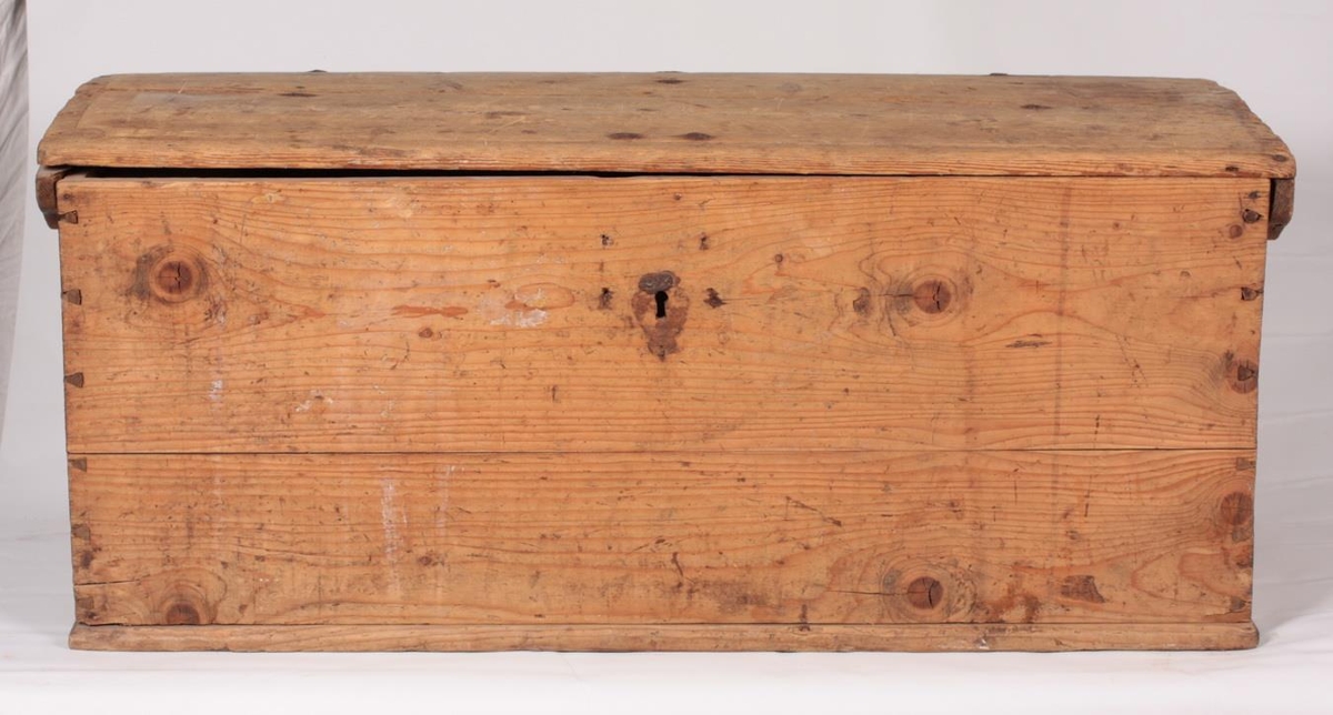 Kista úr furu, ómáluð, gömul. Stærð 104 (lok 109) x 45,5 x 46,5 cm. Lokið er svolítið kúpt, fjalir eru tappaðar á okana sem ná svolítið út fyrir kassann, sem er geirnegldur. 3 járn nokkuð löng eru á kistunni og læsingajárn fyrir miðju. Ofan á loki er stríkun sem vísar til nokkuð gamals aldurs. Handraði er vinstra megin í kistunni. Kistan er frá Ási í Hegranesi. Gefendur eru Lovísa og Kristbjörg Guðmundsdætur frá Ási.