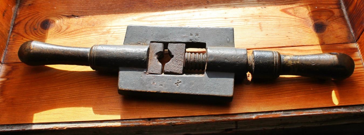 Úr báðum endum miðstykkisins ganga handföngin, er annað steypt í eitt með miðstykkinu, en hitt skrúfað í, og er skrúfgangurinn úr stáli. Með því að skrúfa handfangið til er hægt að breyta bilinu milli bakkahlutanna, en annar helmingur bakkans er með falsi og rennur til. Er hægt að taka bakkann úr og setja í bakka af öðrum stærðum ef vera vill. Gat er í gegnum lausa handfangið. Minnsta lengd klúbbsins er 34 cm.