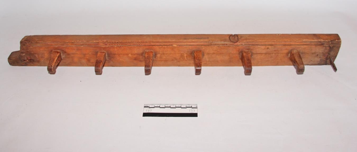 Uglutré úr furu, alls 73 cm langt, með sex uglum sem eru um 5,5 cm langar. Tréð er strikað á neðri brún. Úr forstofunni í gamla bænum á Páfastöðum á Langholti.