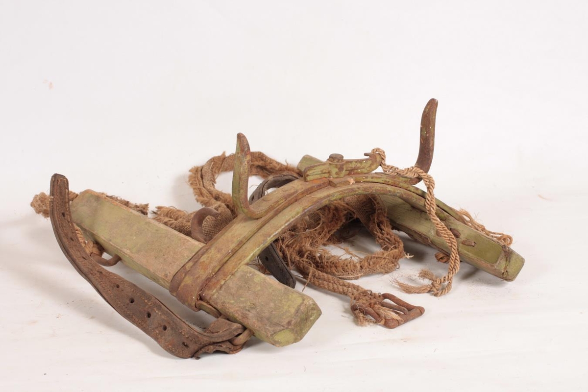 Klyfberi, allur grænmálaður. Hliðarfjalir eru úr furu, 39 cm langar, boginn er 43 cm langur úr járni með hleypiklökkum. Hæð klakka er 11 cm. Járnkrókur er á hægri hliðarfjöl fram við bogann til að binda taum eða varning á. Járnlykkjur eru á tveimur stöðum á hliðarfjölunum fyrir móttök úr leðri og gjarðir úr hampi og striga.