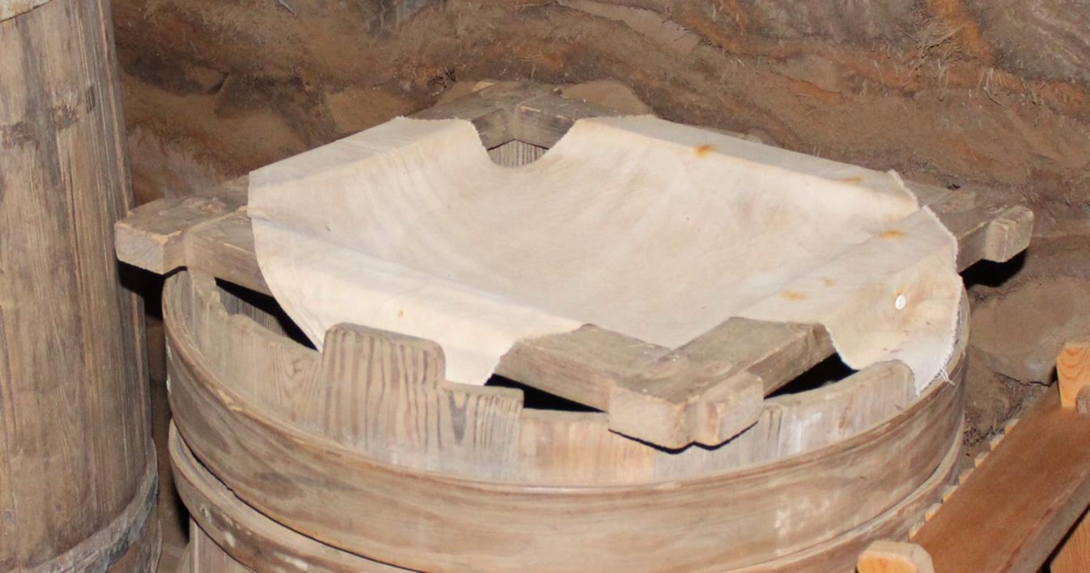 Skyrgrind/skyrsía, gerð úr fjórum furulistum sem grópaðir eru saman og negldir. Hún er 43,5 x 48 cm, en endar listanna krossleggjast þó dálítið. Sían hefur verið strengd á 15 nagla, en nú eru sex eftir.