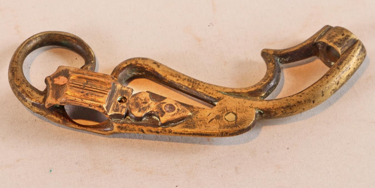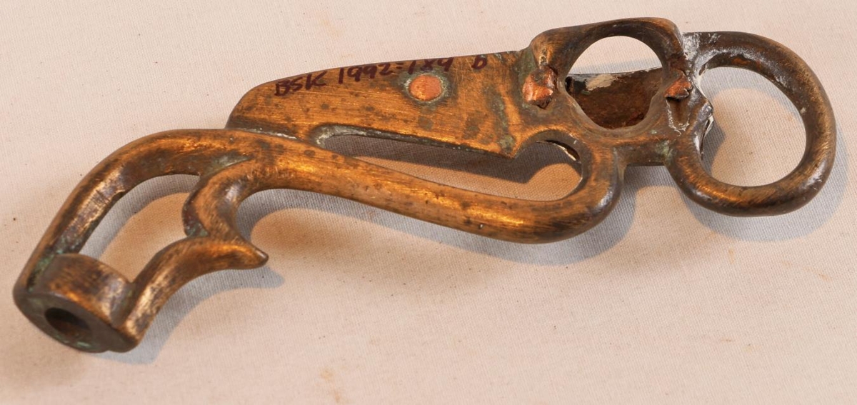 Stangamél (beislisstengur) úr kopar. Lengd 14,5 cm. Það er allt farið af þeim, en þær eru í mjög góðu lagi.