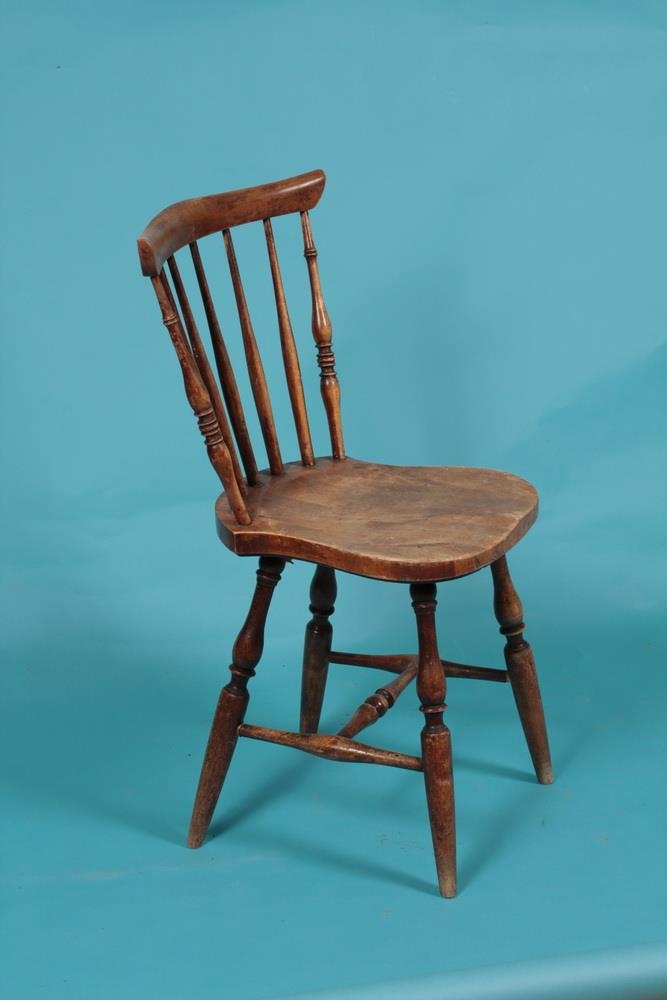 Tréstóll lakkaður úr harðviði. Hæð upp á setuna 46 cm. Fætur eru allir renndir, krosstré er á milli fóta til að styrkja þá. Setan er 36 x 41,5 cm og 3.5 cm þykk. Hún er ekki slétt að ofan, örlítið skorið úr henni. Hún er bogadregin að aftan og framan en skorið inn úr hliðunum. Þverbakið er 40 cm á hæð fyrir miðju en 51,5 cm á lengd. Sjö pílárar eru lóðrétt í bakinu, tveir ystu eru renndir.