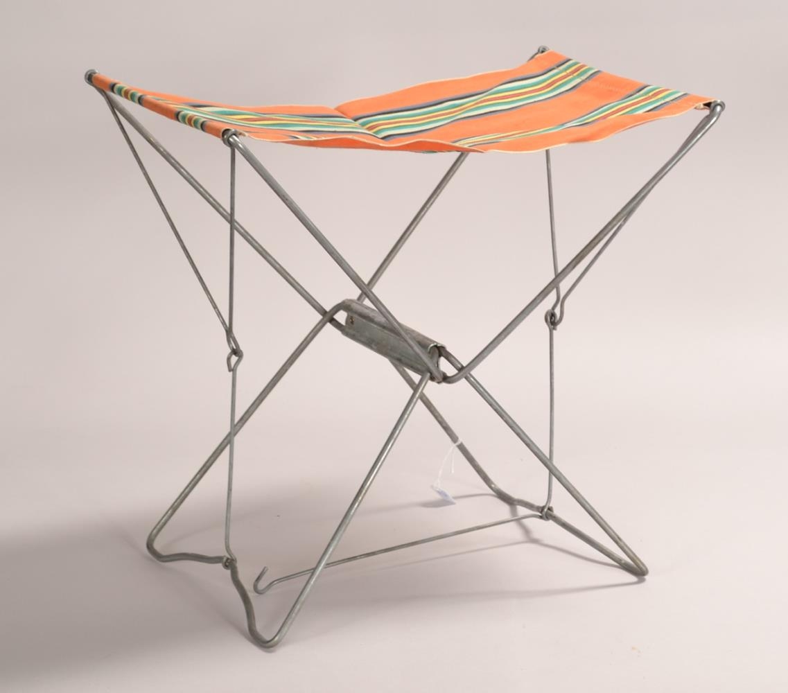 Fellistóll úr járni og með marglitu bómullaráklæði. Stóllinn fylgdi Comby Camp tjaldvagni (BYR 2020-506).