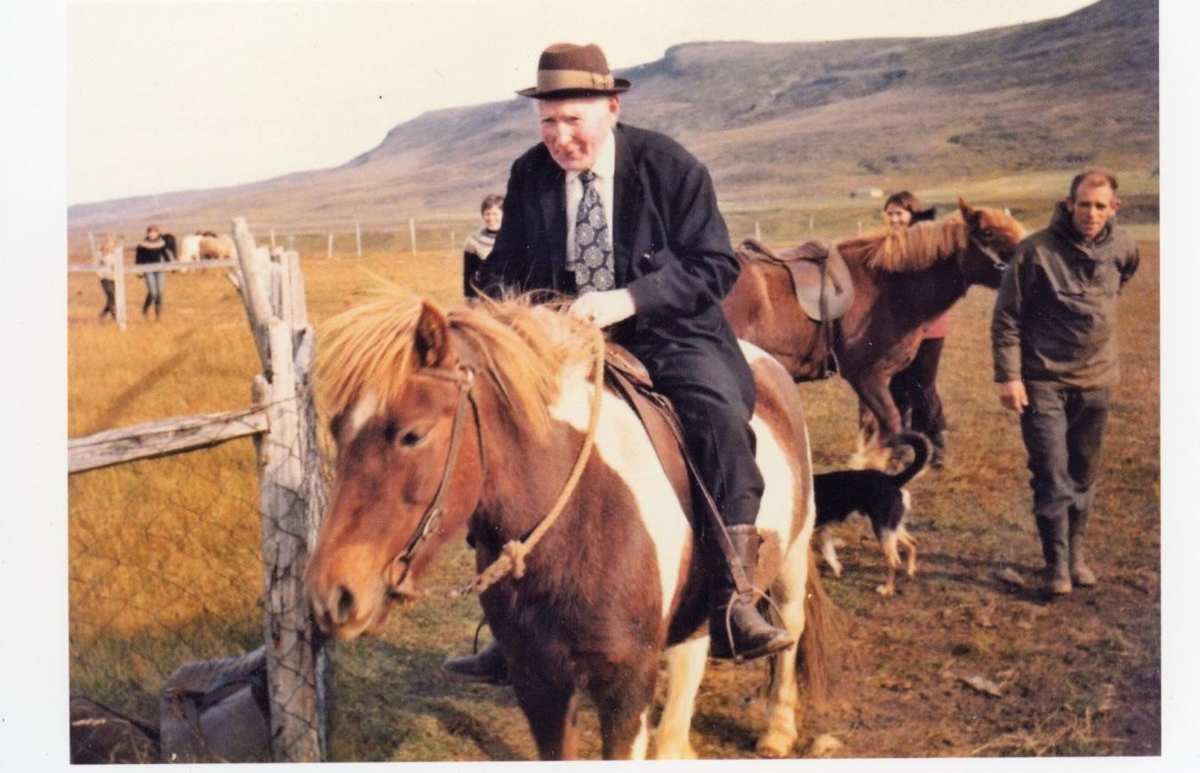 Árni Tómasson frá Lambastöðum á hestbaki og Ingvi Eyjólfsson bóndi í Sólheimum í torfréttinni á Gillastöðum.