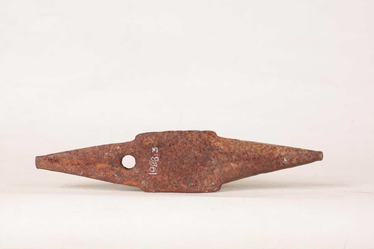 Steðji úr járni, 33 cm langur. Mesta breidd er 7 cm. Hæðin er 21 cm. Jóna Guðmundsdóttir á Berghyl gaf safninu steðjann. Hann var áður í eigu Myllu-Kobba.