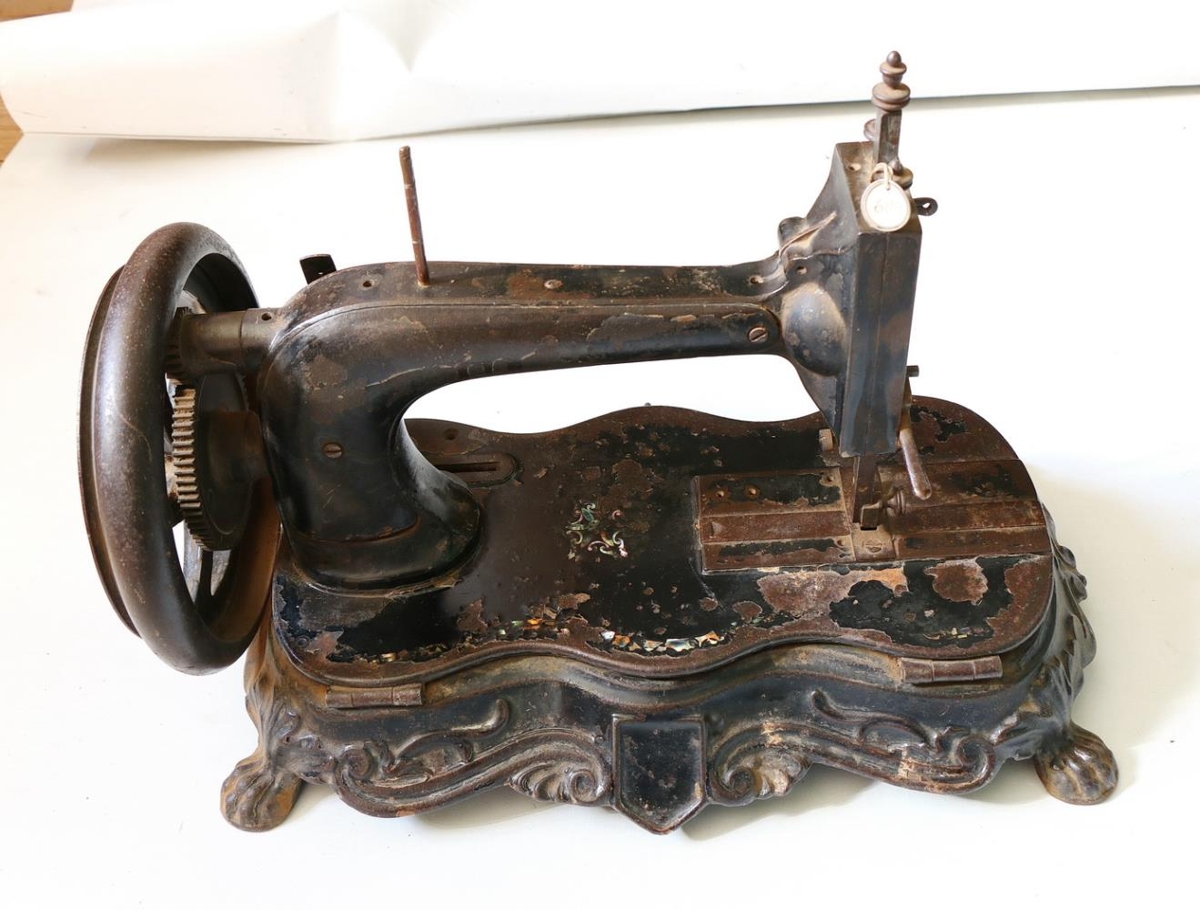 Ekkert verksmiðjumerki er sjáanlegt á vélinni, en hún mun vera meðal fyrstu gerða af saumavélum sem fluttust hingað til lands. Vélin er nothæf enn.