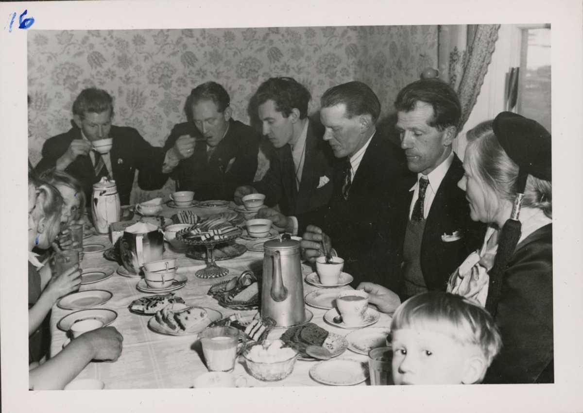 Frá vinstri. Hugrún og Inga Þorkelsdætur á Hróðnýjarstöðum, Kristján og Helgi Einarssynir frá Hróðnýjarstöðum, Guðmundur Hannesson, Jón Skúlason á Gillastöðum, Kristmundur Einarsson í Rauðbarðaholti og Sigríður Einarsdóttir á Leiðólfsstöðum.