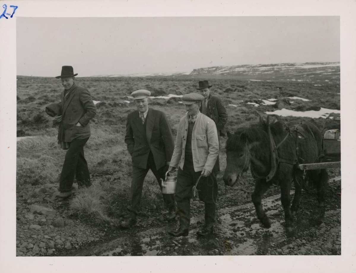 Á ferð milli Ljárskóga og Hróðnýjarstaða. Frá vinstri. Daníel Tómasson á Kollsá, Vignir og Þorkell Einarssynir og Haraldur B. Guðmundsson (bakvið).
