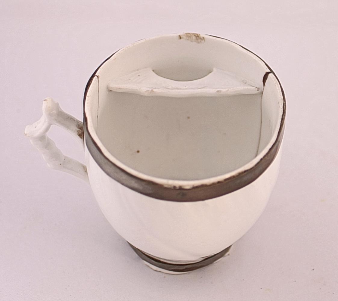 Hæð 9 cm, þvermál á börmum er 9,5 cm en þvermál á botni er 5,3 cm. Enginn stimpill er á botni og er botninn ,,levarnaður". Í bollanum er skegghlíf með ,,súpgati".
