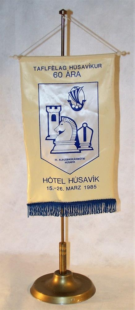Veifa sem gefin var út í tilefni 60 ára afmælis Taflfélags Húsavíkur. Veifan er merkt III. alþjóðlega skákmóti Húsavíkur sem haldið var á "Hótel Húsavík 15. - 26. marz 1985."