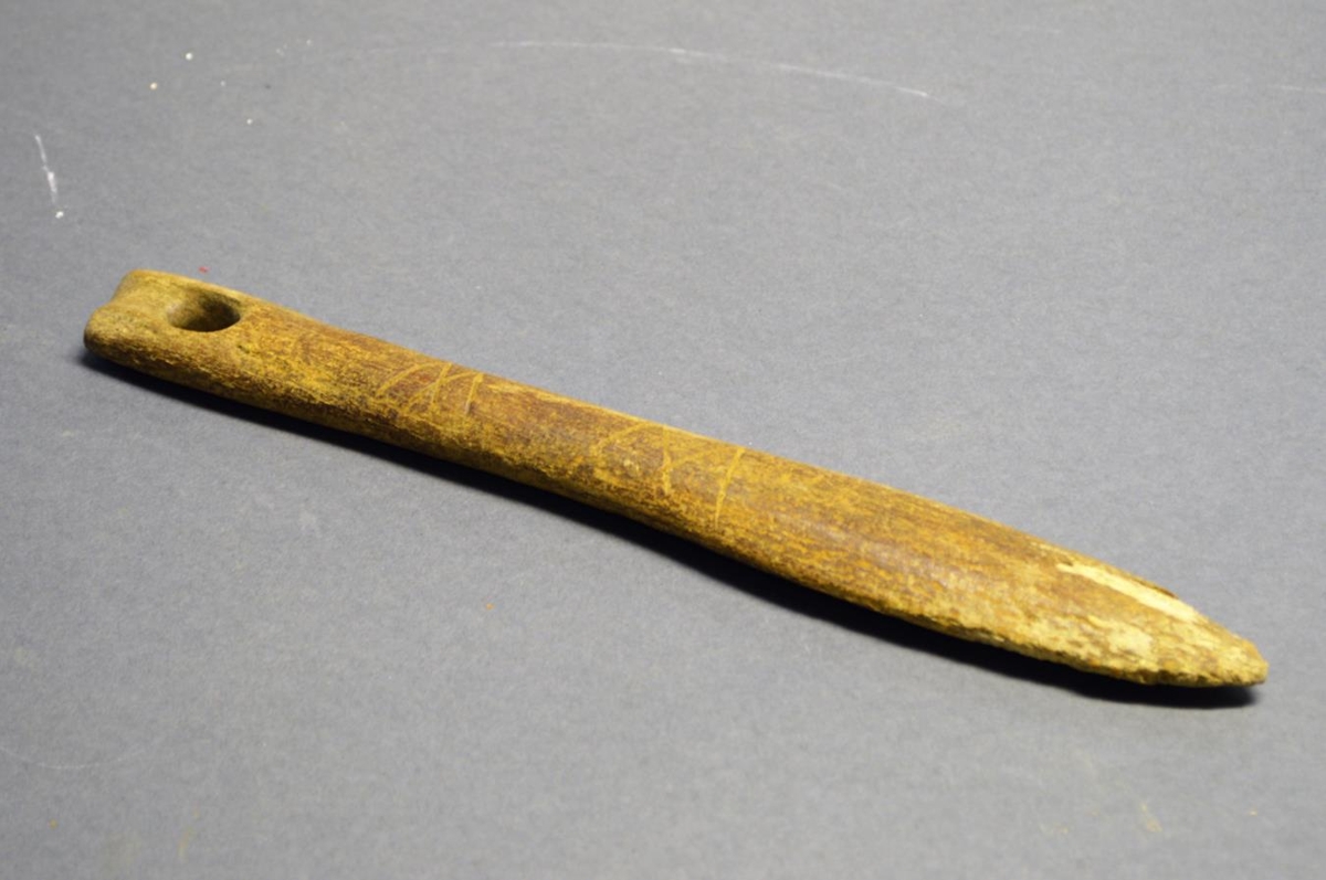 Seilarnál úr hvalbeini, merkt W=Einar Einarsson á Strönd, V fyrir E, fimmti stafur í stafrófi. L 27