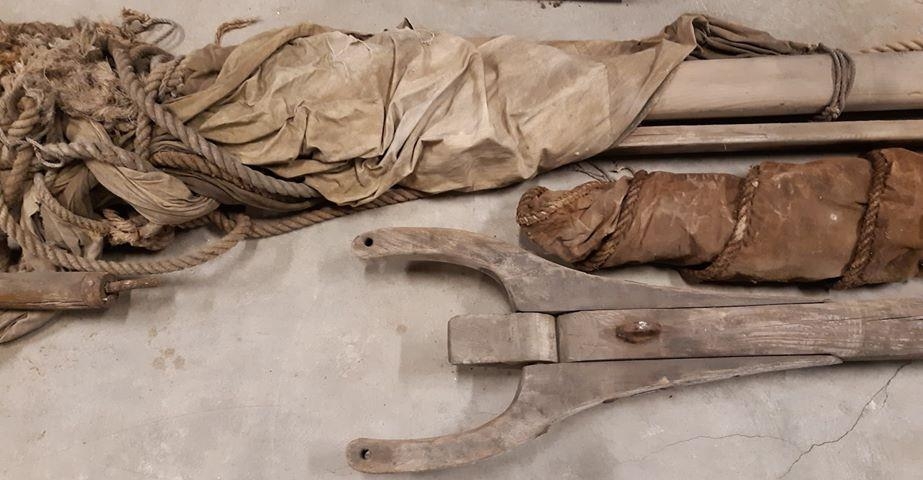 Seglbúnaður af báti sem Jóhann Bjarnason á Eyrarbakka gerði út. Í mörgum pörtum.