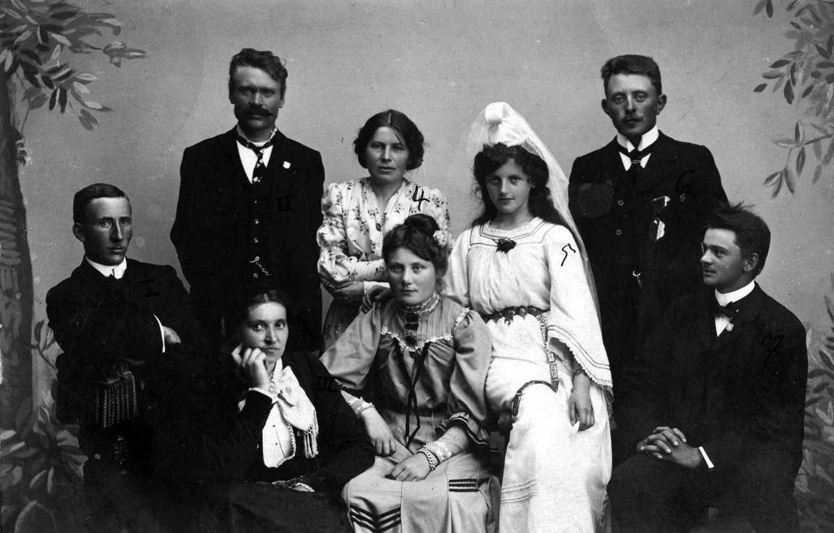 Hópmynd tekin á ljósmyndastofu.