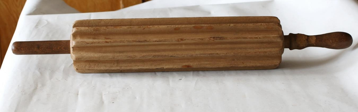 Smjörkefli úr brenni. Það er líkast venjulegu kökukefli í laginu nema hvað eftir sjálfu keflinu (valtanum) ganga 11 hryggir og djúpar grópir á milli. Það er um 36 cm langt og um 9,2 cm í þvermál. Skaftið, sem gengur gegnum sjálft keflið, er 57,8 cm langt og með handfangi á öðrum enda. Leikur keflið um skaftið.
