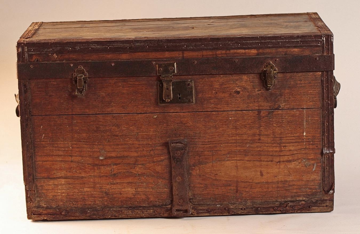 Ferðaskrínur úr eik, 25,3 x 61 cm og 37,5 cm háar. Tvær eins (sjá einnig grip BSk-223-b). Skrínurnar eru með koffortslagi og báðar eins geirnegldar og allar brúnir slegnar þunnu járni, sem nú er víða orðið ryðgað. Einnig er járn á lokbörmunum er gengur niður á kassann lokaðan. Á hvorri skrínu eru tvær smellur að framan og skrá í miðju, allt úr látúni, svo og lamir, en lykil vantar. Á bakhlið eru skrúfaðar tvær lykkjur úr járni til að hengja skrínurnar á klakk og að framan er lóðrétt járn með tveimur augum fyrir ólar. Á göflum eru leðurhankar.