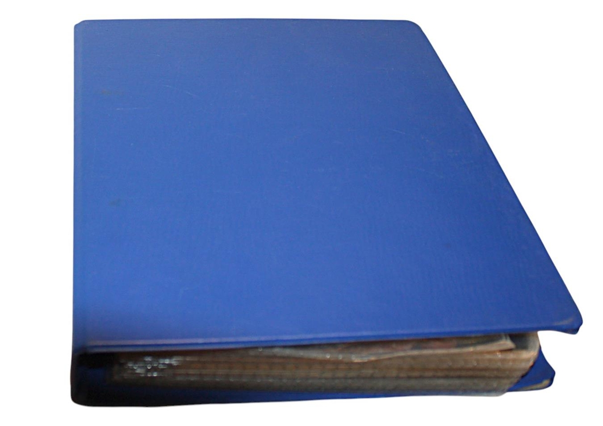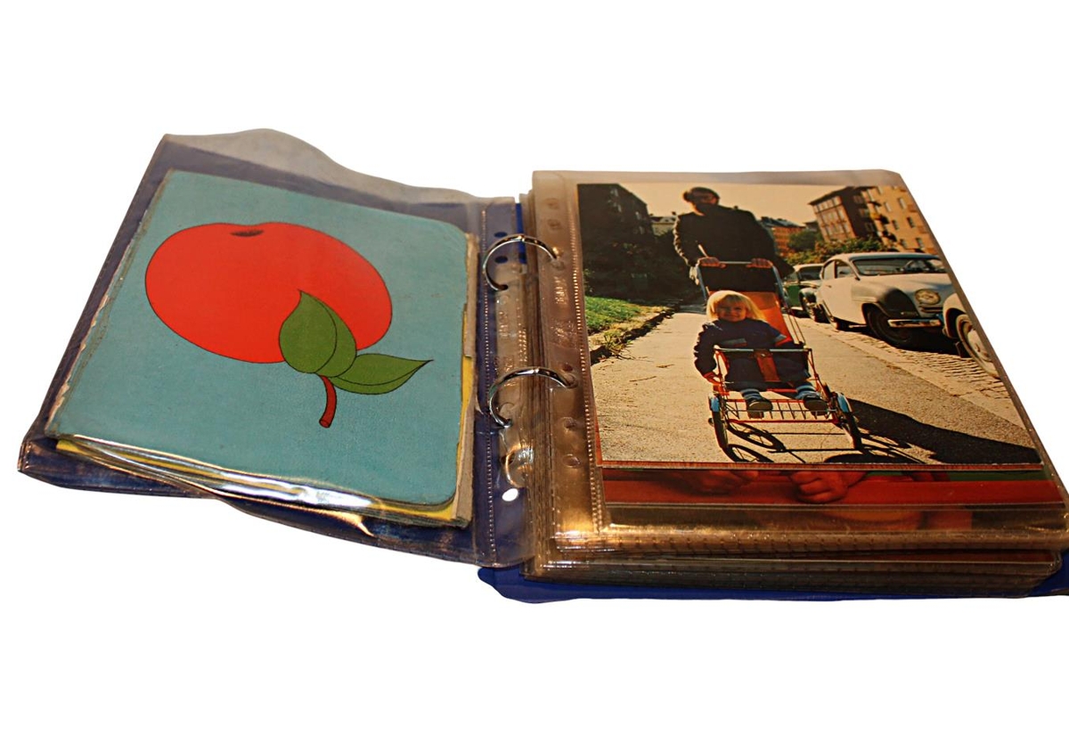 Blá mappa með spjöldum, hefur líklega verð gerð af kennurum sérdeildar Brekkubæjarskóla