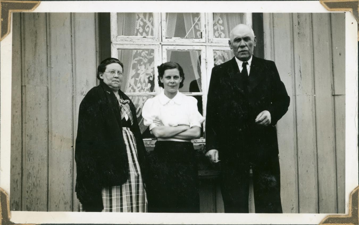 Jakobína Sigtryggsdóttir og Klemenz Klemenzson með Sigríði dóttur þeirra í miðju. Við myndina er skrifað: Jakobína, Sigríður Kl., Klemenz.