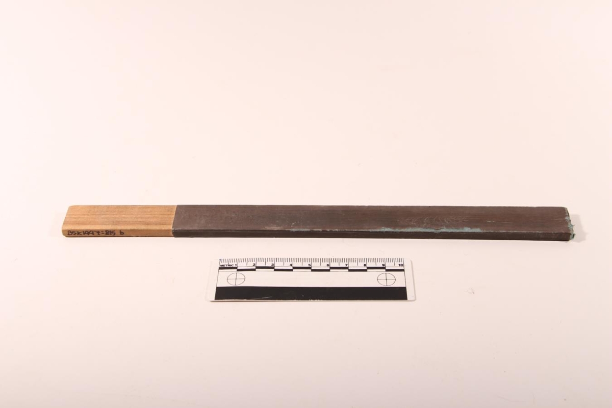 Slípifjalir úr furu, 3 stk. Með pappír, límdum á til að pússa með. Pappinn er dökkgrár að lit. Á a) er ekkert tákn en pappinn er mjög slitinn. Á b) er skrifað 3-0. Á c) er skrifað 2-0. Ferhyrndar. Notað til að slípa, pólera.