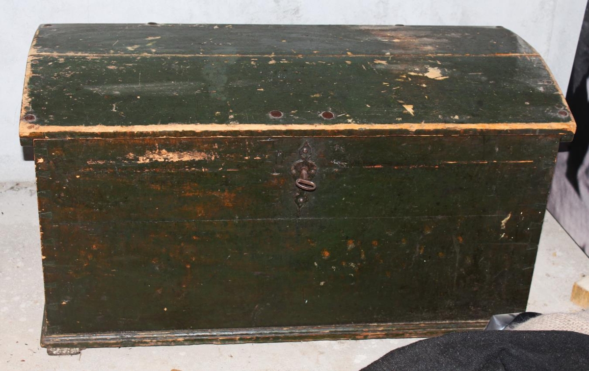 Græn kista með lykli, sem Sigurður Pétursson (1843-1929) á Hofsstöðum smíðaði. Lokið er örlítið kúpt. Hæð alls 54 cm. Breidd á loki 50 cm, lengd 1 m. Hæð á kassa 47 cm, lengd 95,5 cm. Gefandi er Birna Björnsdóttir, Goðalandi 18, Reykjavík.