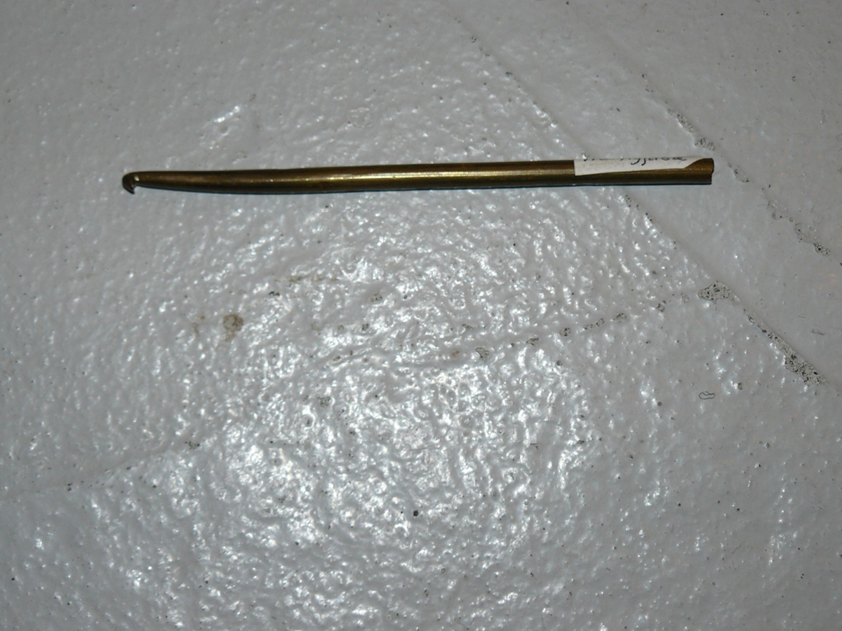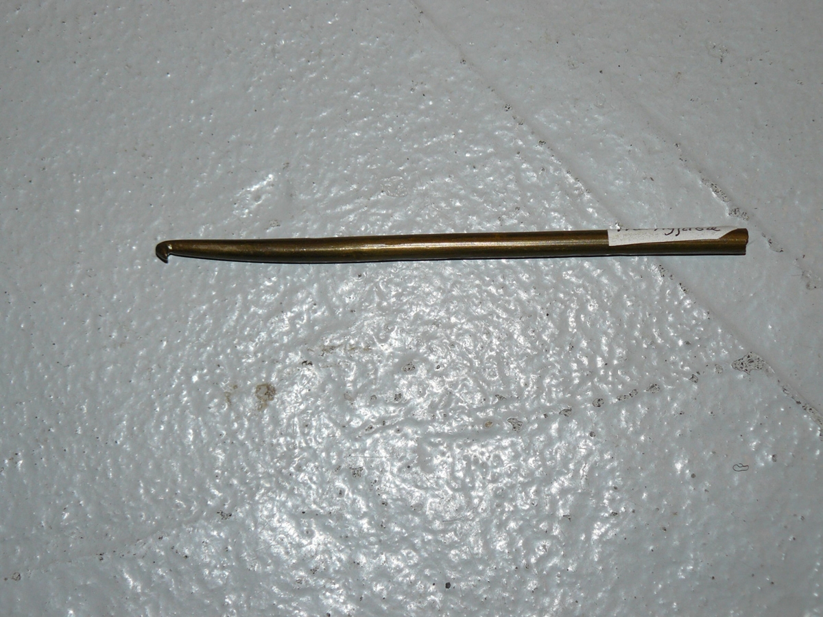 Heklunál, hún var notuð til að hekla útidyramottur og fleira gróft, gjarnan úr trollgarni eða álíka. Var í eigu systranna Laufeyjar og Dagbjartar Jónsdætra sem bjuggu í Nýjabæ í Garði. Gefandi: Ingibjörg Anna Gísladóttir frá Nýjabæ.