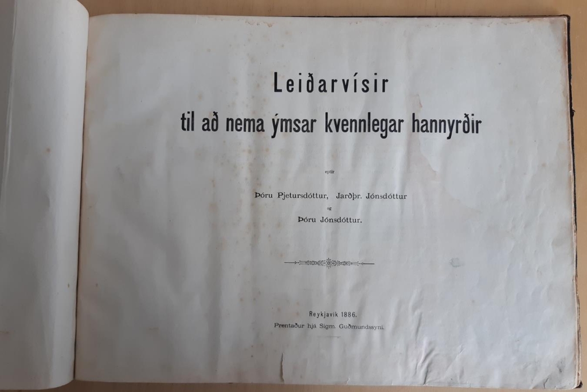 Bókin heitir: Leiðarvísir til að nema ýmsar kvennlegar hannyrðir. Útg. Reykjavík 1886, prentaður hjá Sigm. Guðmundssyni. Bókarkápan er svört að lit með hörðum spjöldum. Efst í vinstra horni bókarinnar er greipt í með gylltum stöfum Sig. G. Hafliðadóttir.