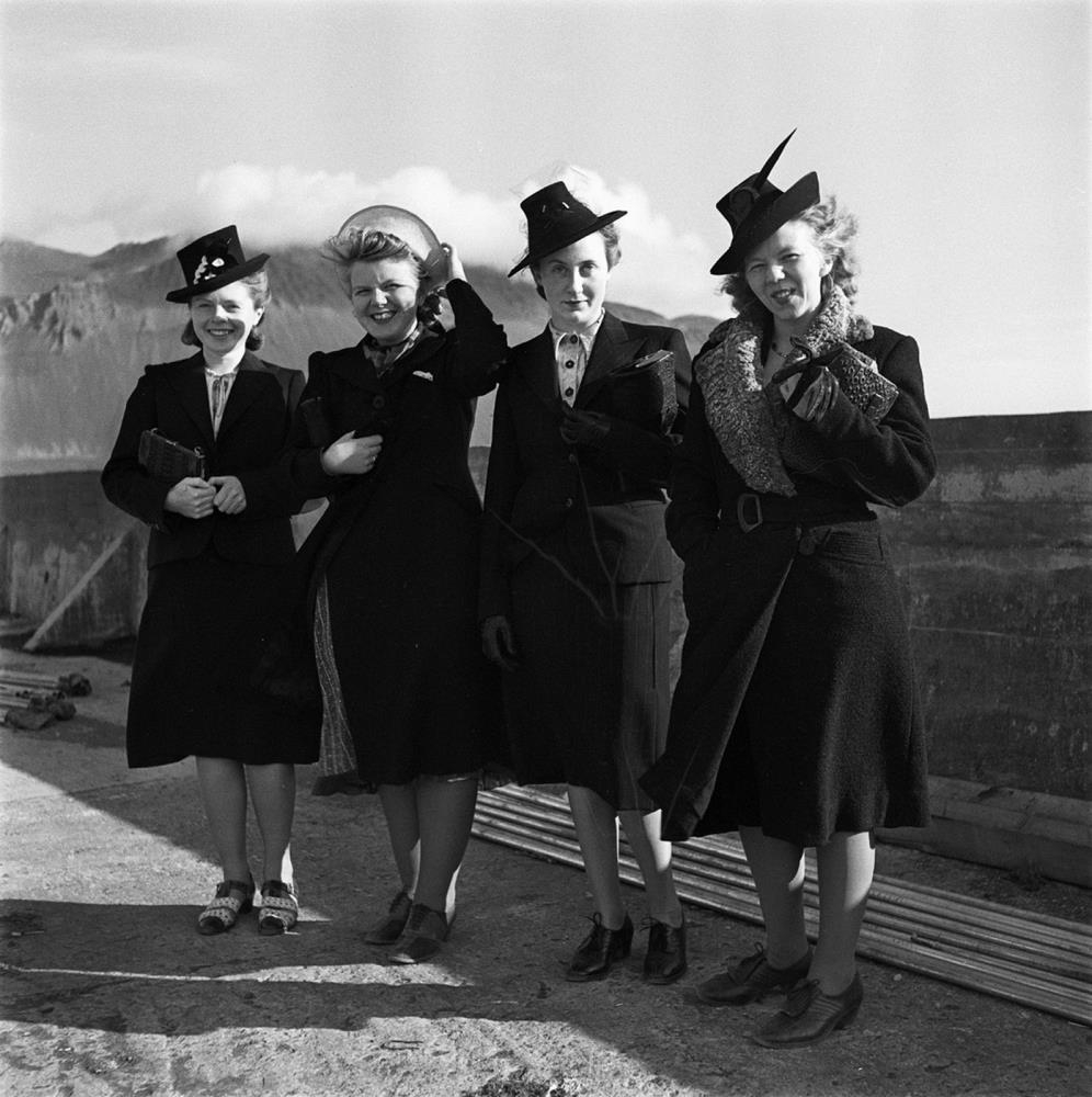 292. Mýrasýsla. Prúðbúnar stúlkur. Frá vinstri Þuríður Ragna Jónsdóttir (10.9 1910 – 26.12 2006) Björnssonar frá Svarfhóli, Selma Jónsdóttir Björnssonar frá Bæ, Hanna Helgadóttir frá Vogi. Hún ólst upp hjá Jóni Björnssyni frá Svarfhóli og konu hans Guðrúnu Laufeyju Jónsdóttur Björnssonar frá Bæ.